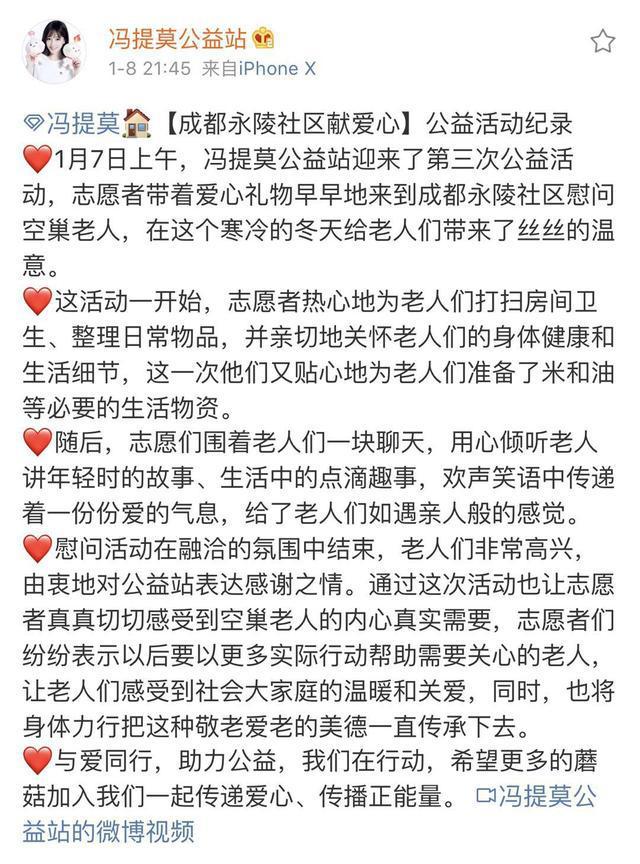 1月19日,冯提莫公益站即将启动第四次公益活动。志愿者们将一如既往地用心投入,将这份温暖不断传递。即便是最微小的善举,他们也会满怀真情地去做。