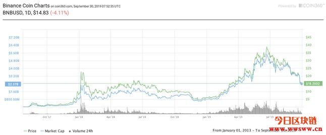 币安币的价格像许多加密货币那样大起大落。它在 2018 年冬季达到了峰值,之后便开始下跌。然而,这个币有其独特性。当其他货币价格下跌时,交易员想要摆脱它,因为币安币与多数货币存在交易对,所以就可能出现其他市场参与者下跌而它却上涨的情况。
